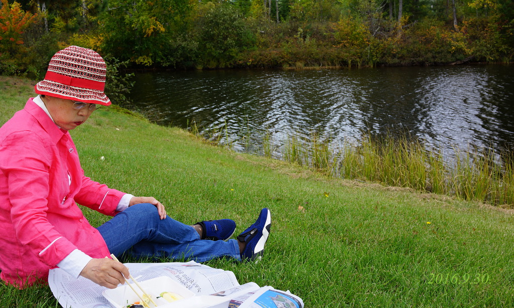 오타와 수로옆 길도 예쁘지만 알곤퀸 가는 길도 호젓하니 좋다, 호숫가에서 점심.