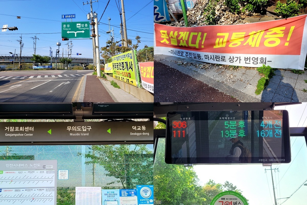 을왕리 방향으로 가는 111번 버스가 용유역을 경유하기에 올라타니 기사님이 휴일에는 무의도에 오지 말라고 한다.