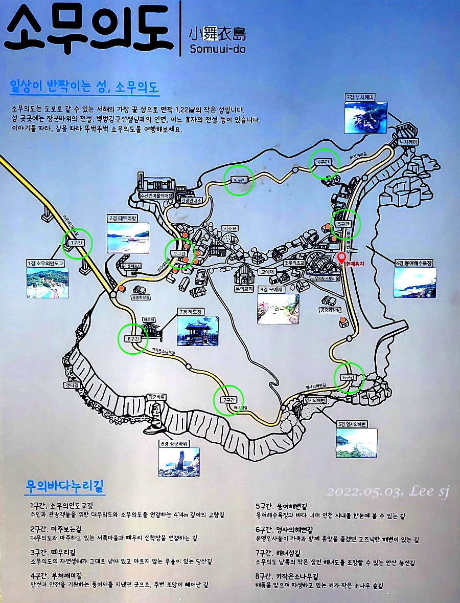 무의도를 맨 마지막 다녀온 날이 코로나의 유행 시작인 재작년 겨울(2019.12.7) 이니 2년 반이 되어 간다. 무의대교를 걸어서 건넜던 날 이다. 이번이 소무의도만 일곱 번째 탐방 이다.
