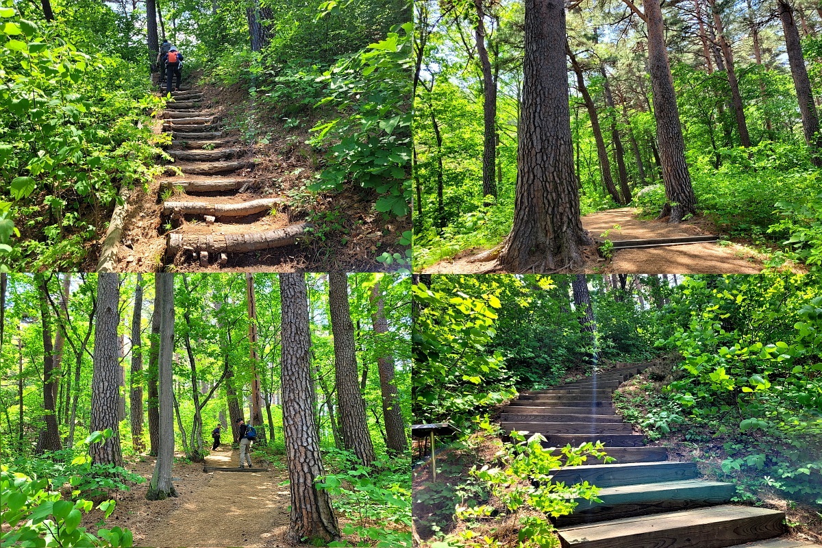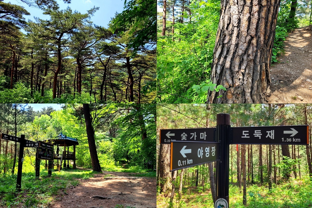 풍욕대, 노루목이, 솔숲교, 한바퀴 돌아 주차장으로 다시 오는 원점회귀 코스 이다.