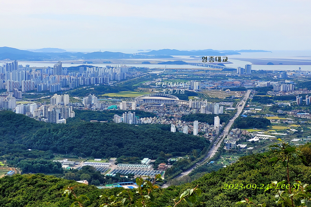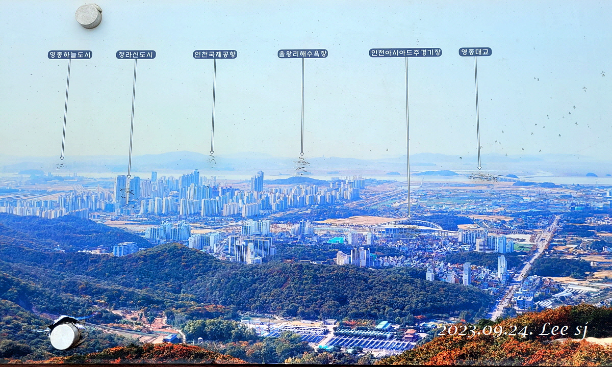 사방으로 조망되는 모습을 사진으로 담으니 그래도 다른날보다 가시거리가 길어 바다 위로 걸쳐진 인천대교도 잘 보이고 바닷물이 보이니 영종대교도 제법 그럴듯 하다.