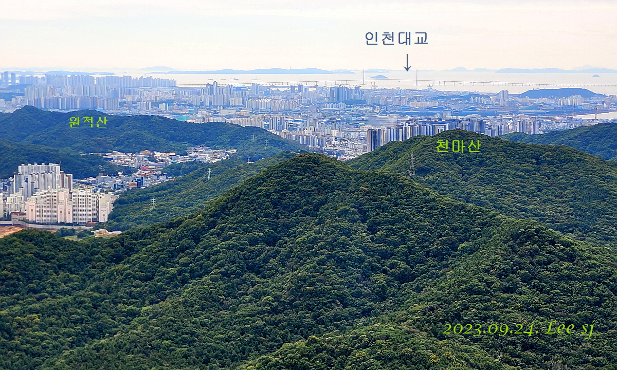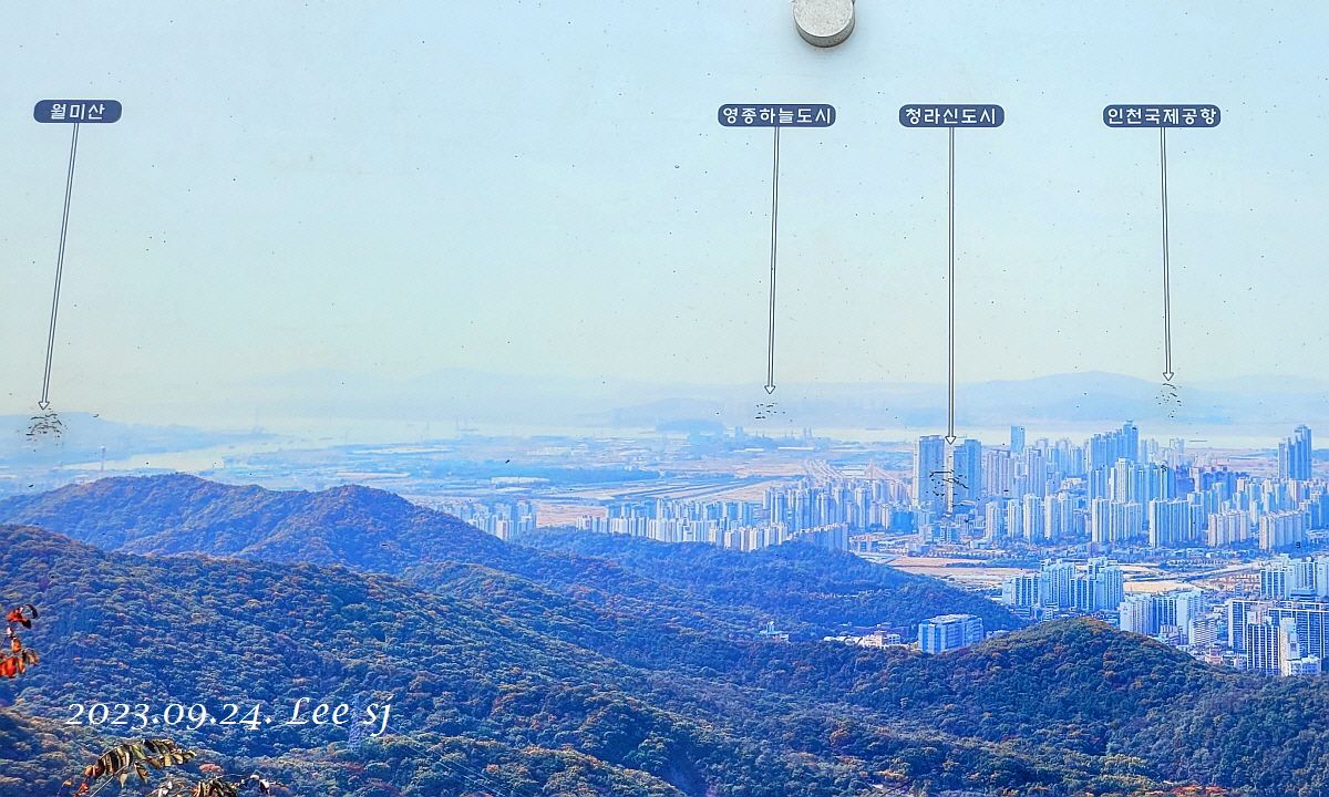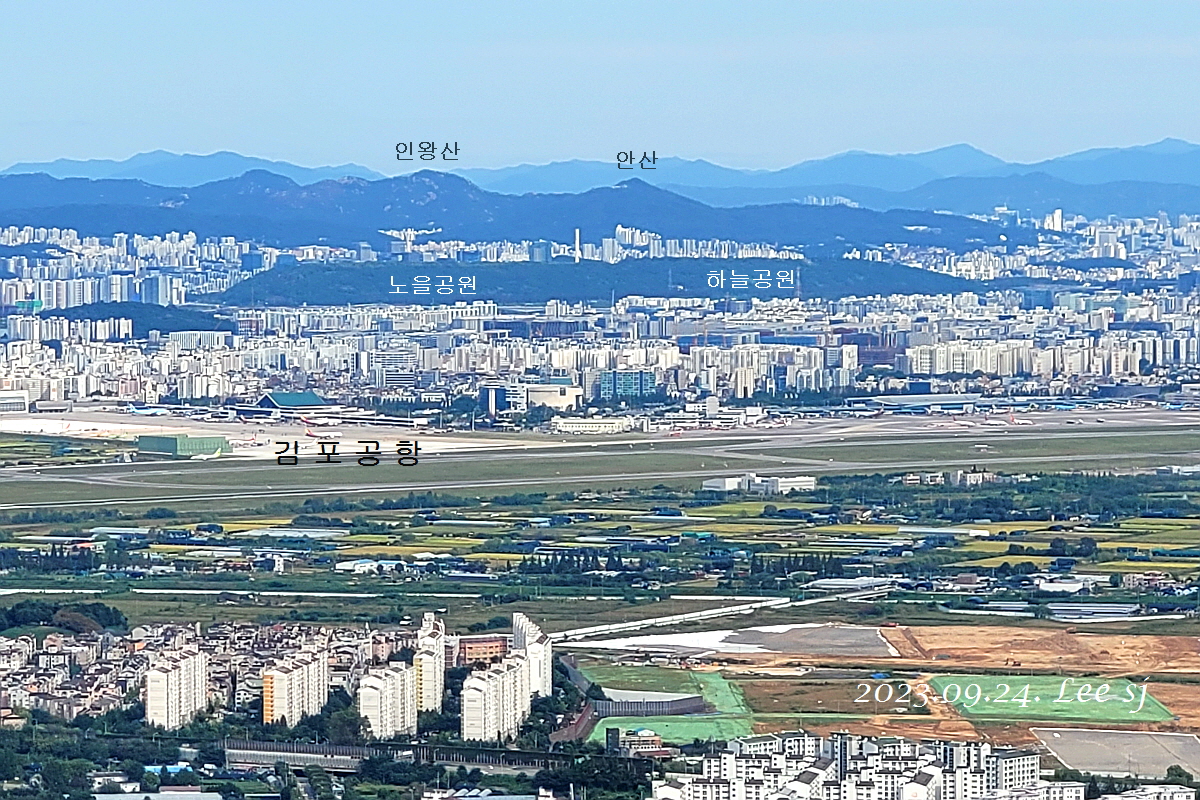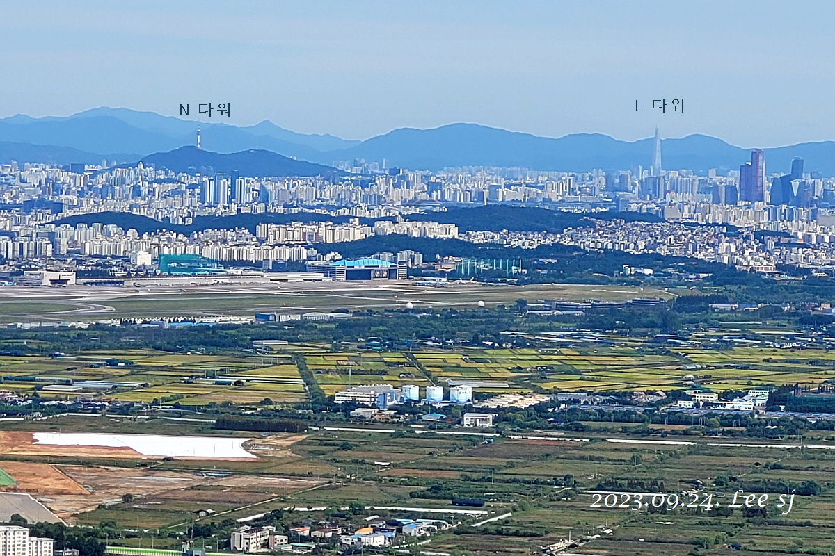 그동안 보이지 않던 동쪽으로 123층 타워, 서쪽으로 마니산도 오늘은 새롭게 눈에 띄어 한바퀴 돌며 눌러 댔다.