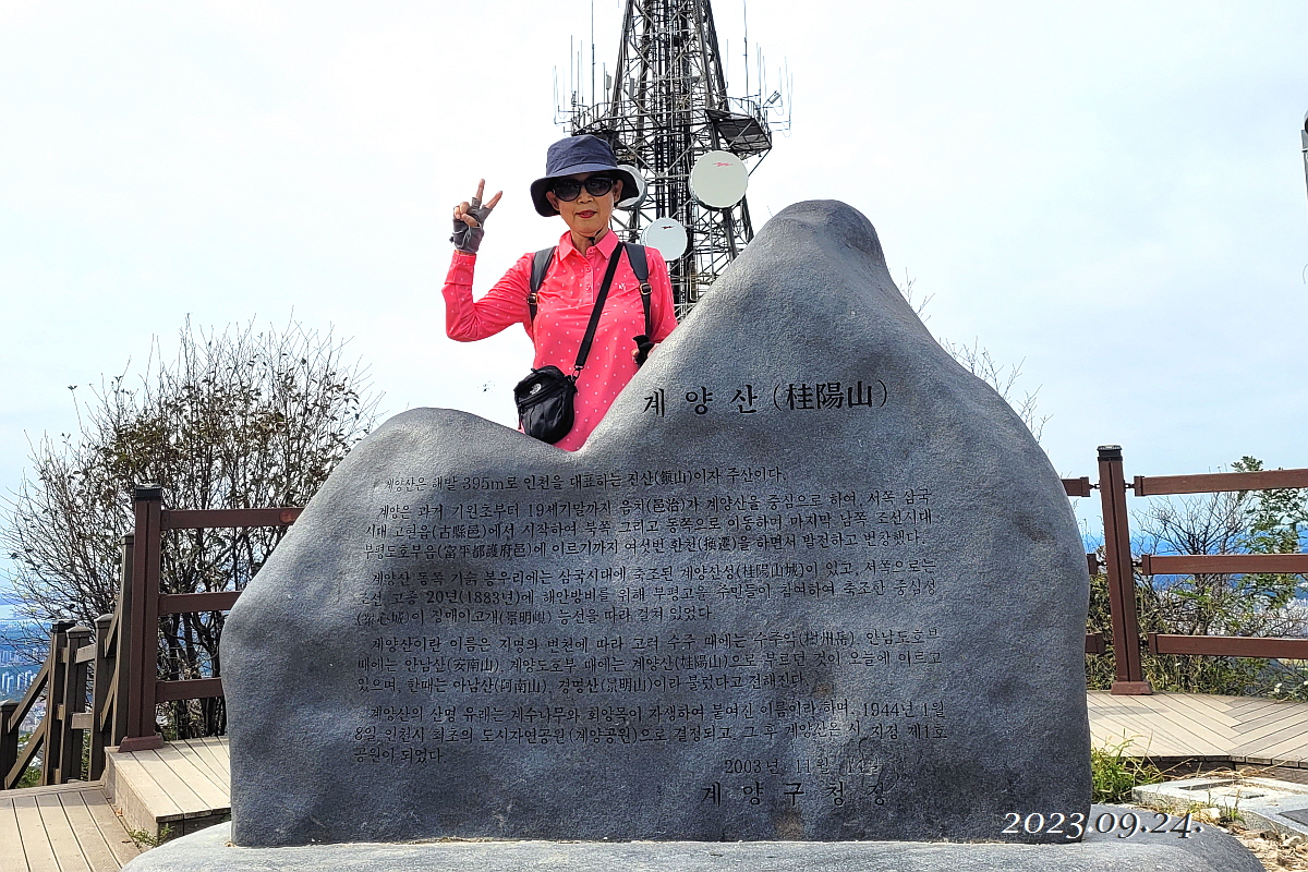계양산은 인천에서 마니산(472m) 다음으로 높은 산, 2009년 첫 산행부터 '22년 두 번('220501, '221126)을 포함하여 6회, 올해(2023년도) 첫 산행('230101) 이후 06/24(토), 07/02(일), 07/39(토), 09/10(일), 오늘(09/24, 일) 포함 6회, 이번 산행으로 모두 열 두 번째 산행 이 된다.