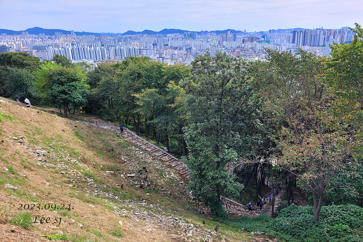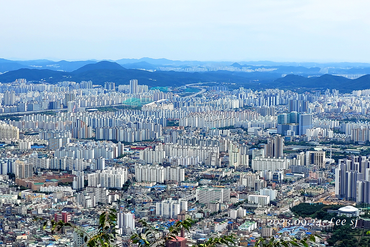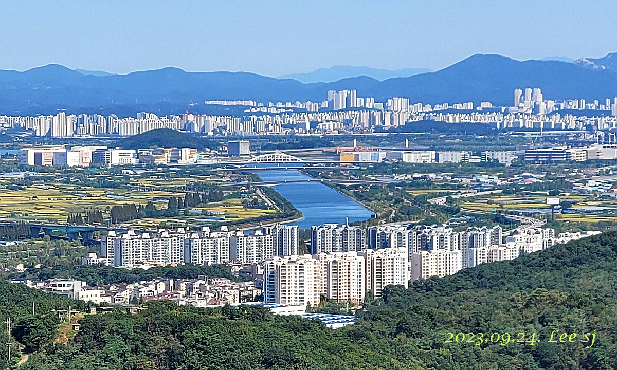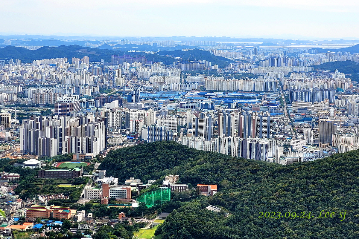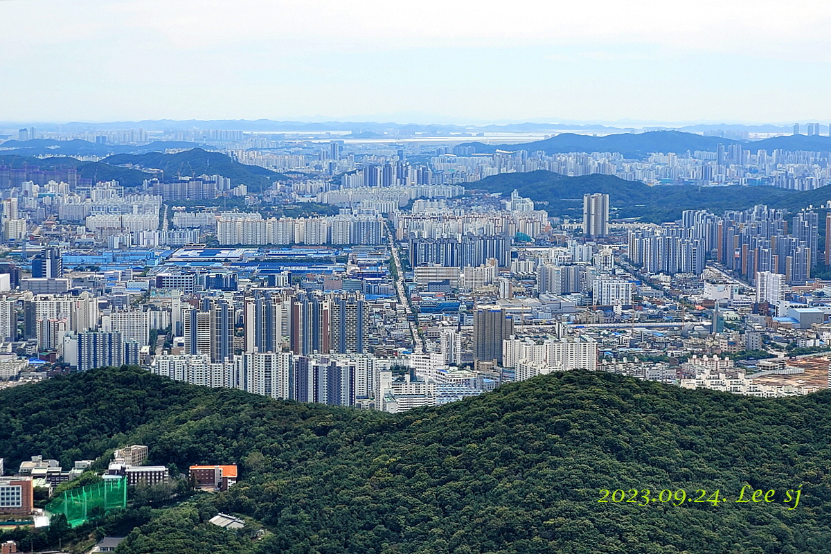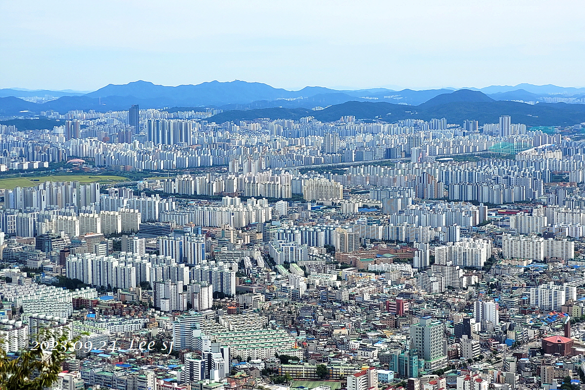 어렵게 올라간 정상에서 바로 내려딛기 아까워 두루 두루 감상하니 넓은 아파트 단지나 건물로만 들어찬 곳은 건물 모양을 축소시킨 분양 전시장 같은 느낌. 성냥갑 같다고 하면 요즘 애들은 성냥갑을 알기나 할까?