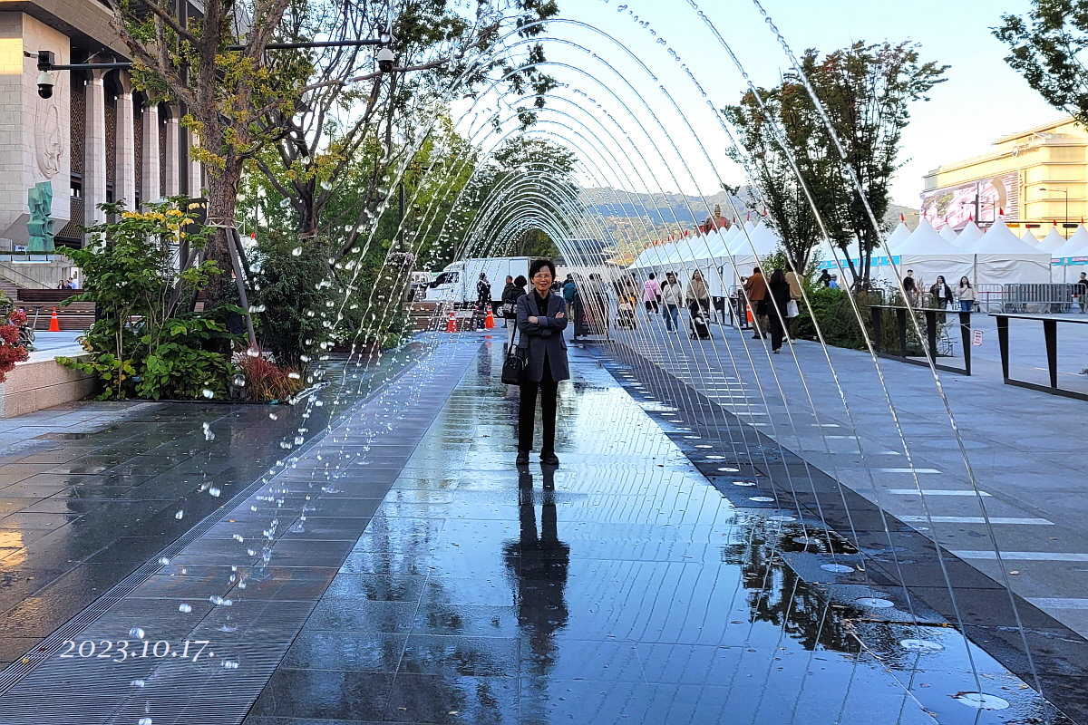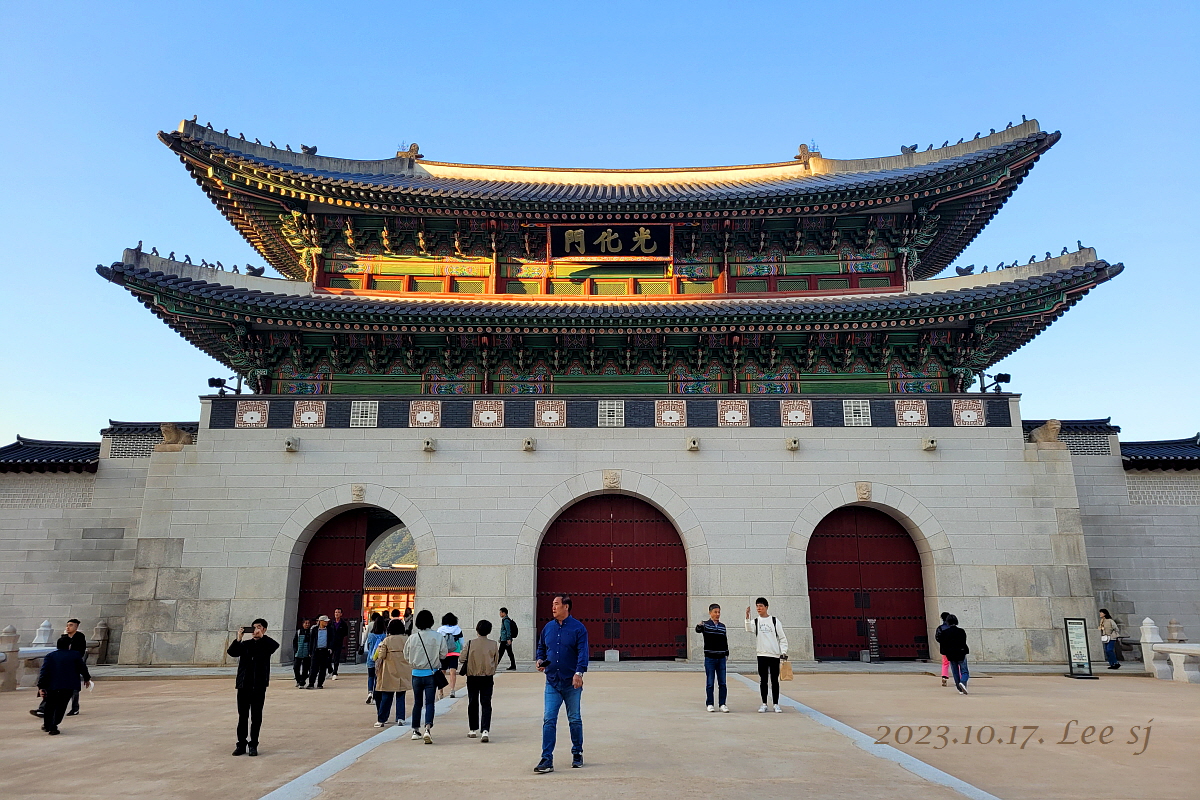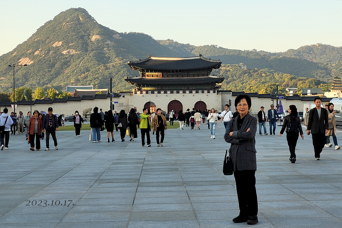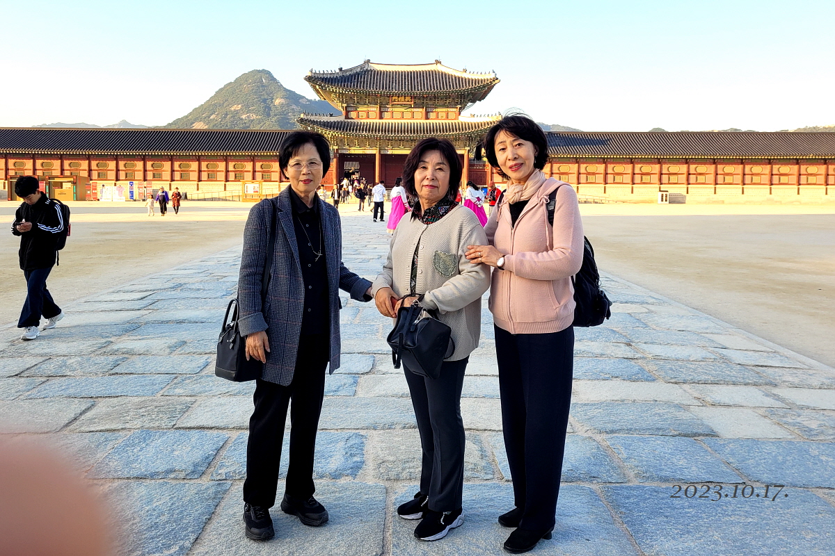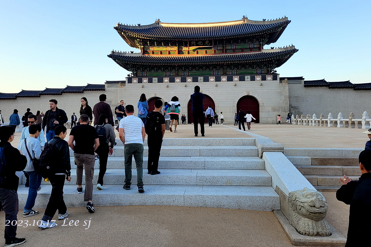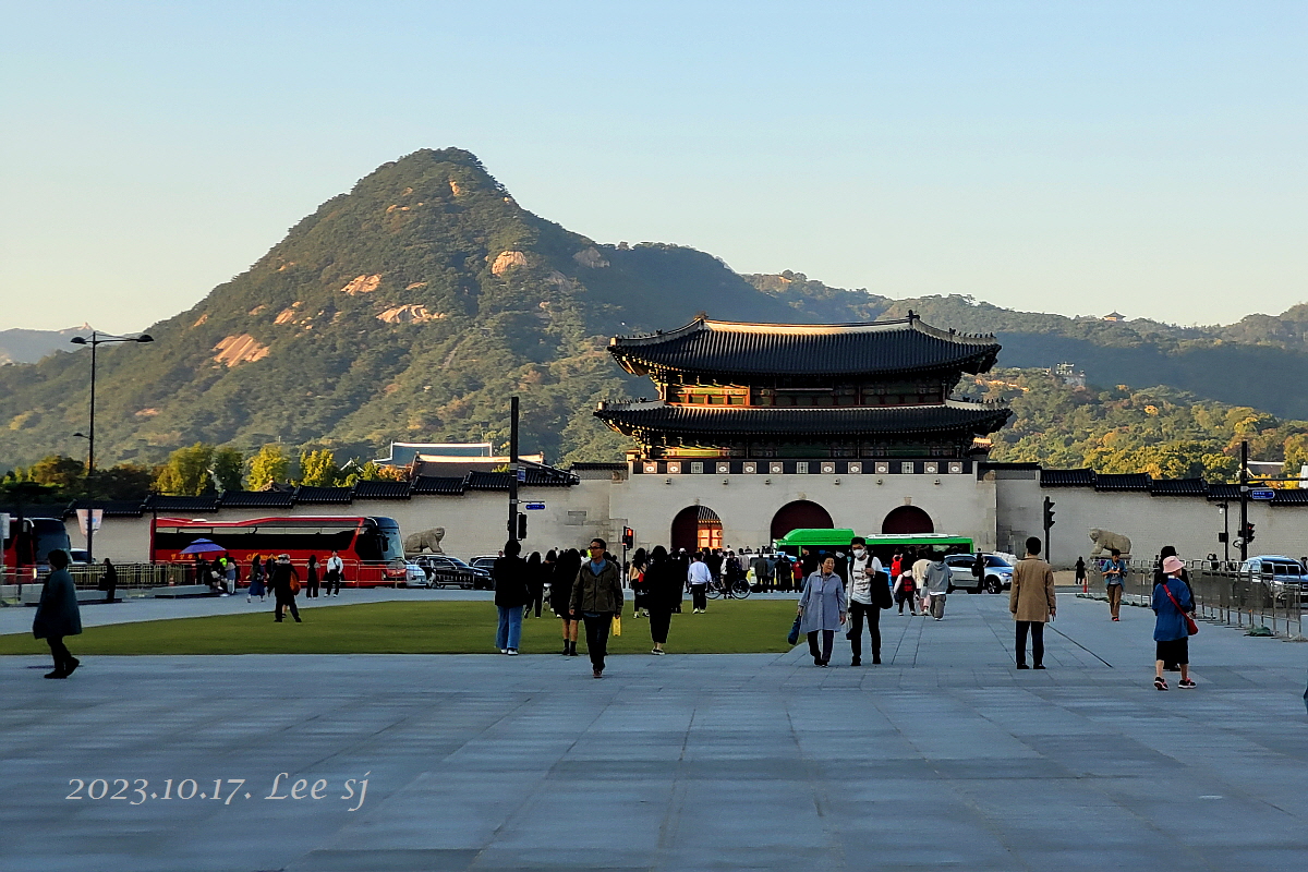 차 마신 후 3층 미술관으로 가니 오늘(화)은 휴관일, 일단 작별하고, 셋이서 새로 복원한 광화문 임금님이 걸으시던 월대 밟아 보고, 삼청동길 산책, 가로수인 은행나무 잎은 아직 물 들 생각이 없다.