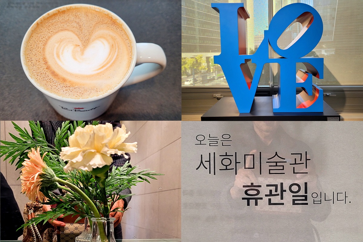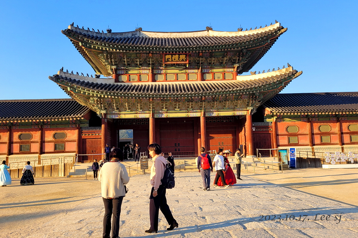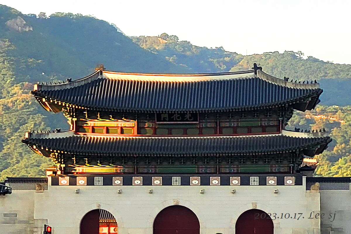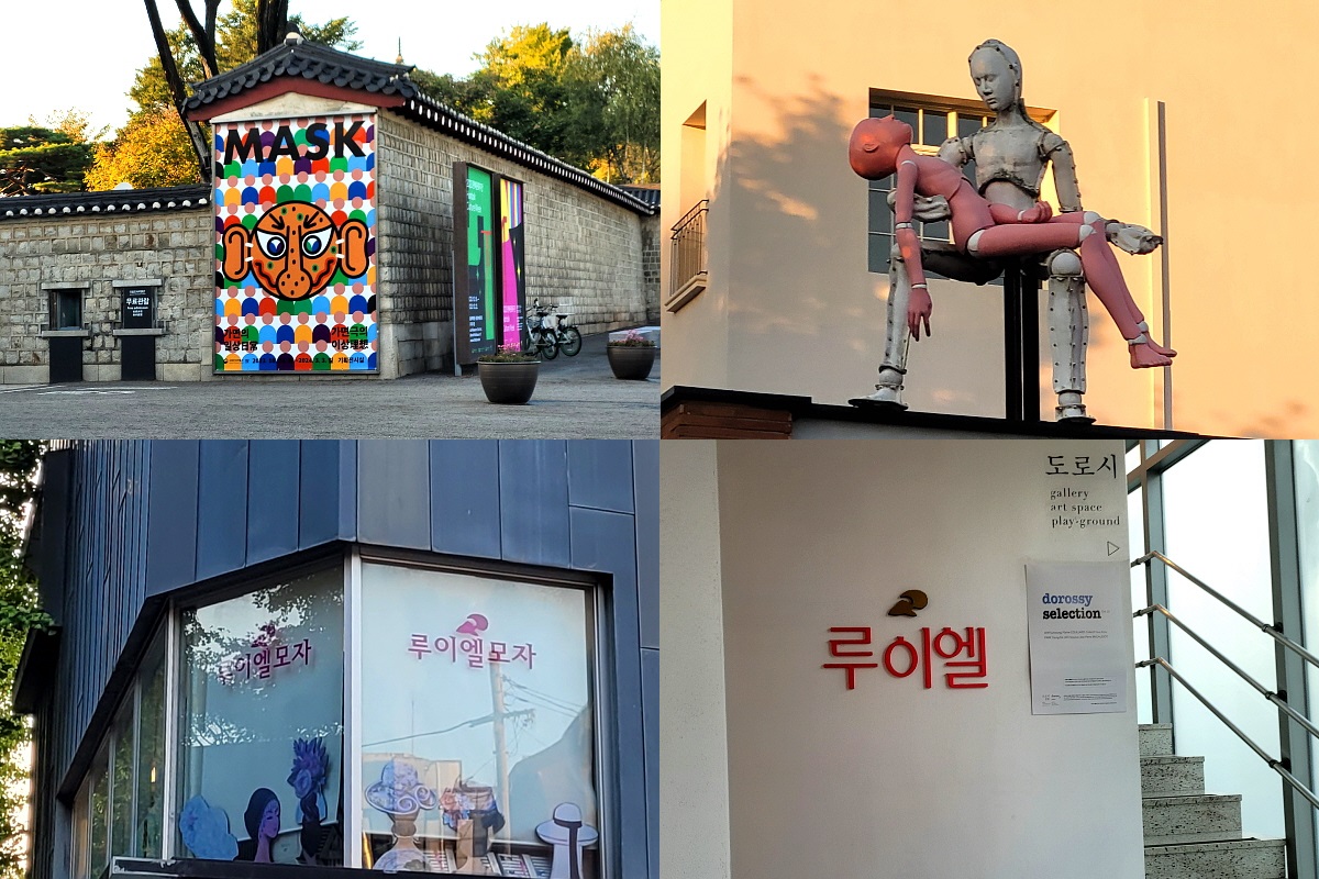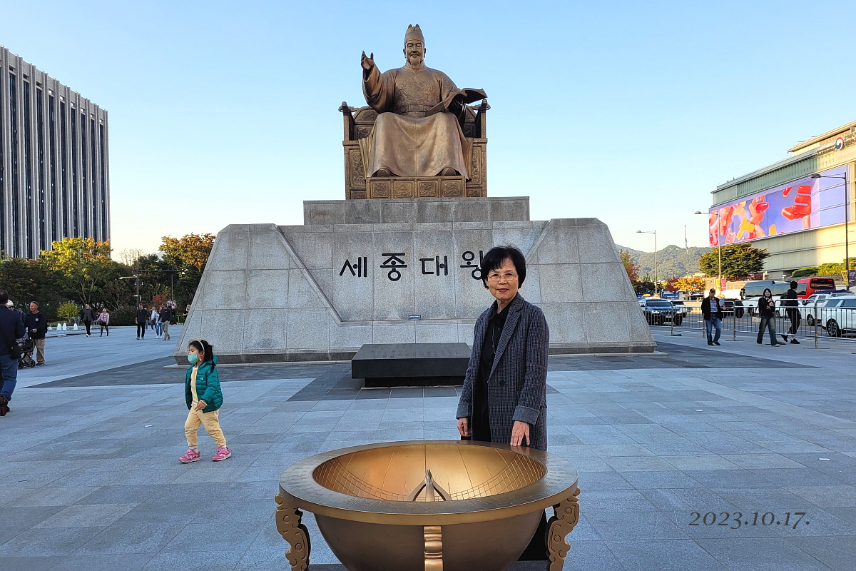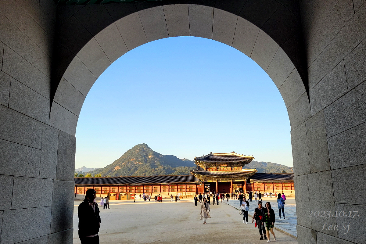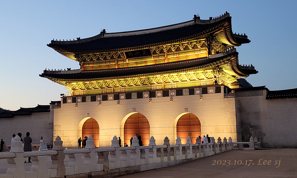 차 마신 후 3층 미술관으로 가니 오늘(화)은 휴관일, 일단 작별하고, 셋이서 새로 복원한 광화문 임금님이 걸으시던 월대 밟아 보고, 삼청동길 산책, 가로수인 은행나무 잎은 아직 물 들 생각이 없다.