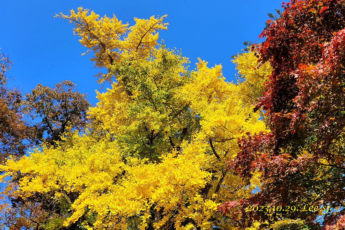 단풍 들 줄 알고 일정 잡은 것인데 ... 곡교천의 은행잎이 노랗게 물들기를 기대 했다가 물들지 않아 아쉬웠는데...