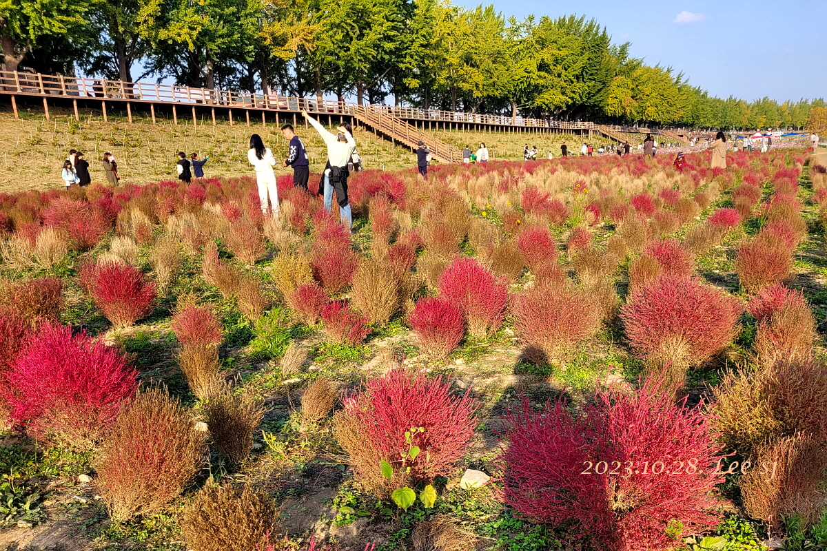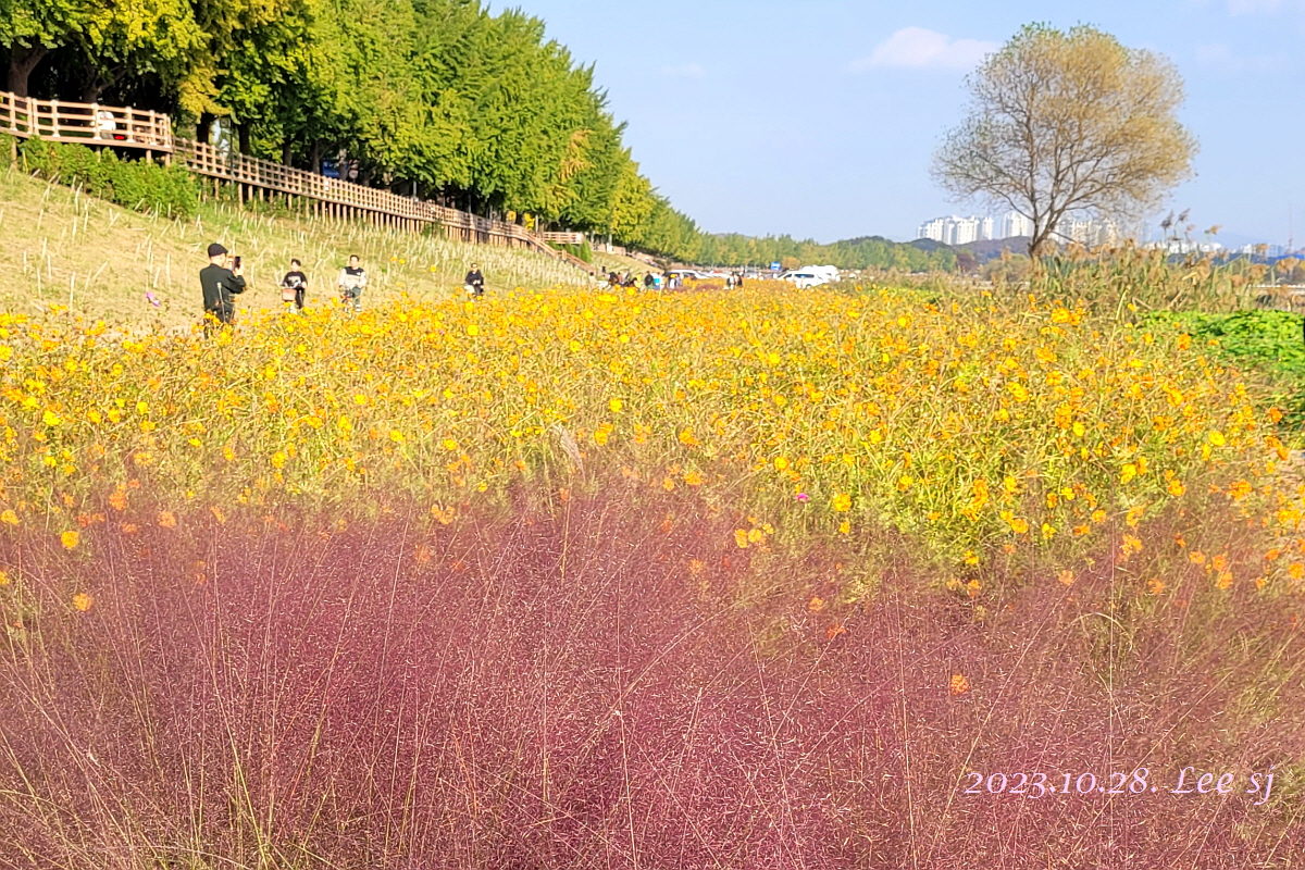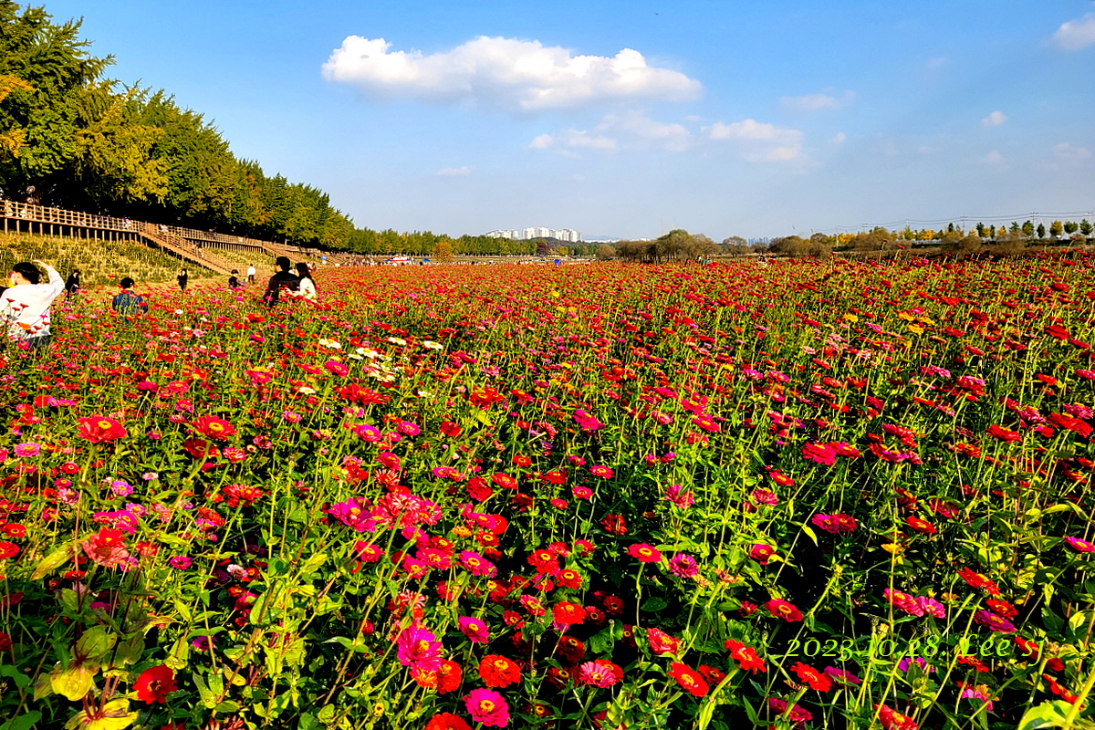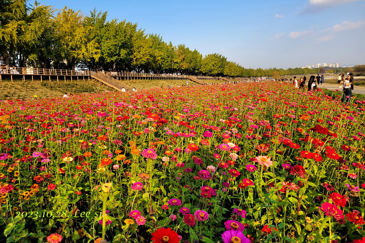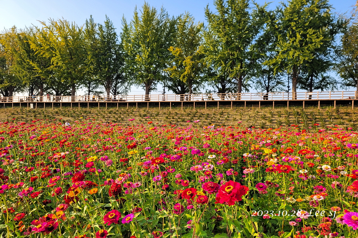 은행잎 대신 너른 고수부지에 핀 빠알간 백일홍이 위로 해주었고,