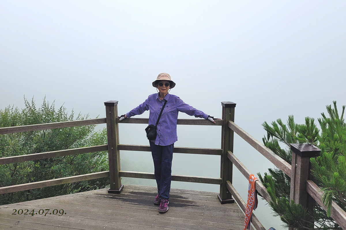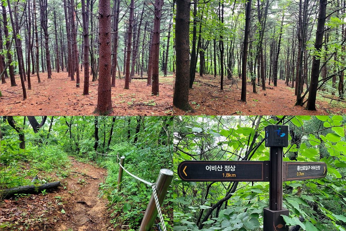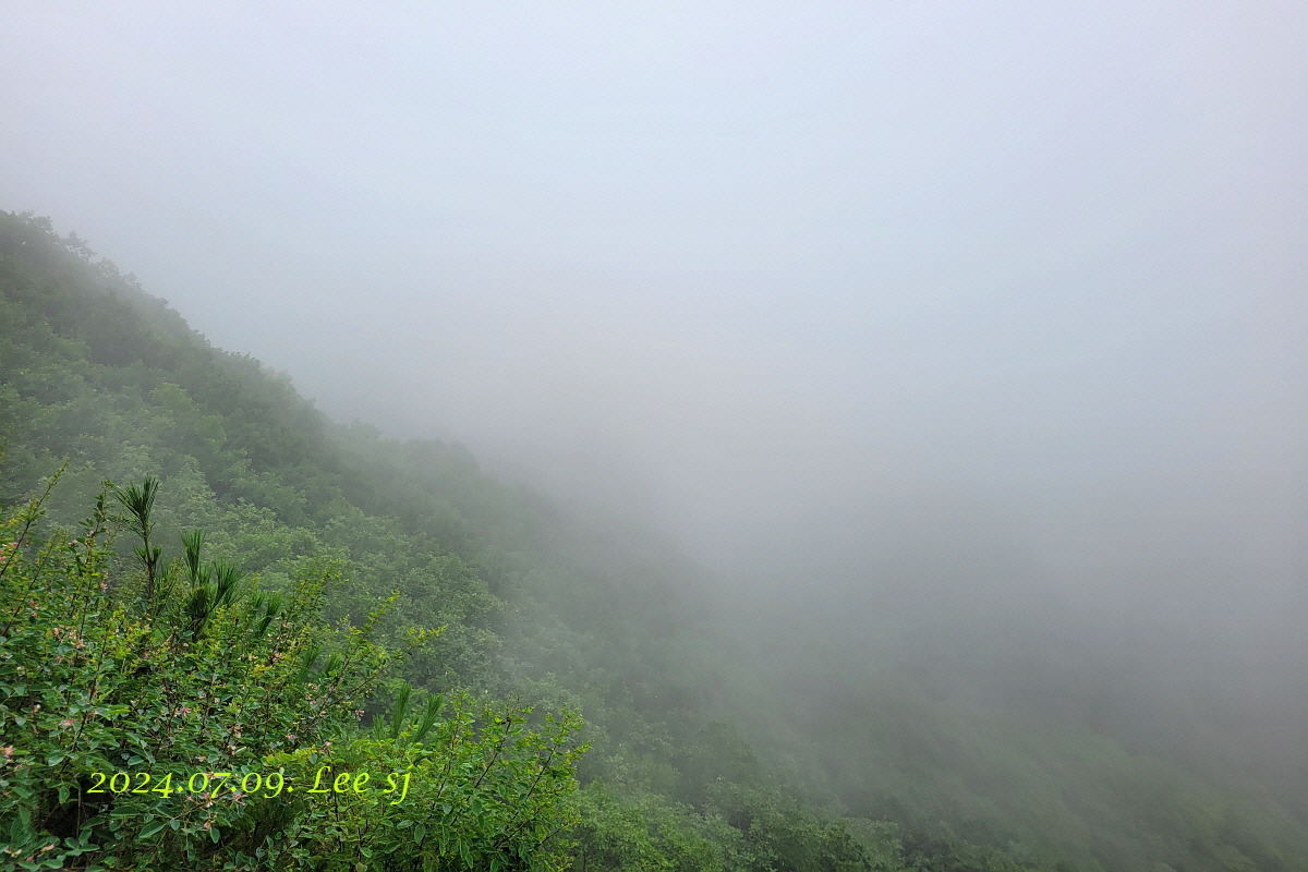 정상은 생각지도 않다 얼떨결에 오른 어비산 첫 경험, 날씨가 잔뜩 흐려 조망은 오리무중 이었으니 산꼭대기 구름 속 신선 놀음, 계곡 옆으로 걸으니 시원했고 뜨거운 햇살이 없어 너무너무 시원했던 하루에 감사 한다.