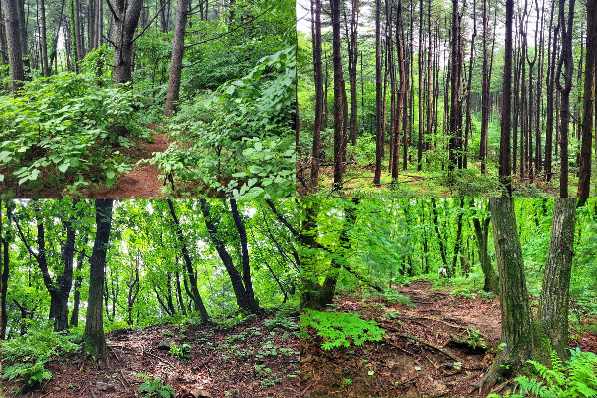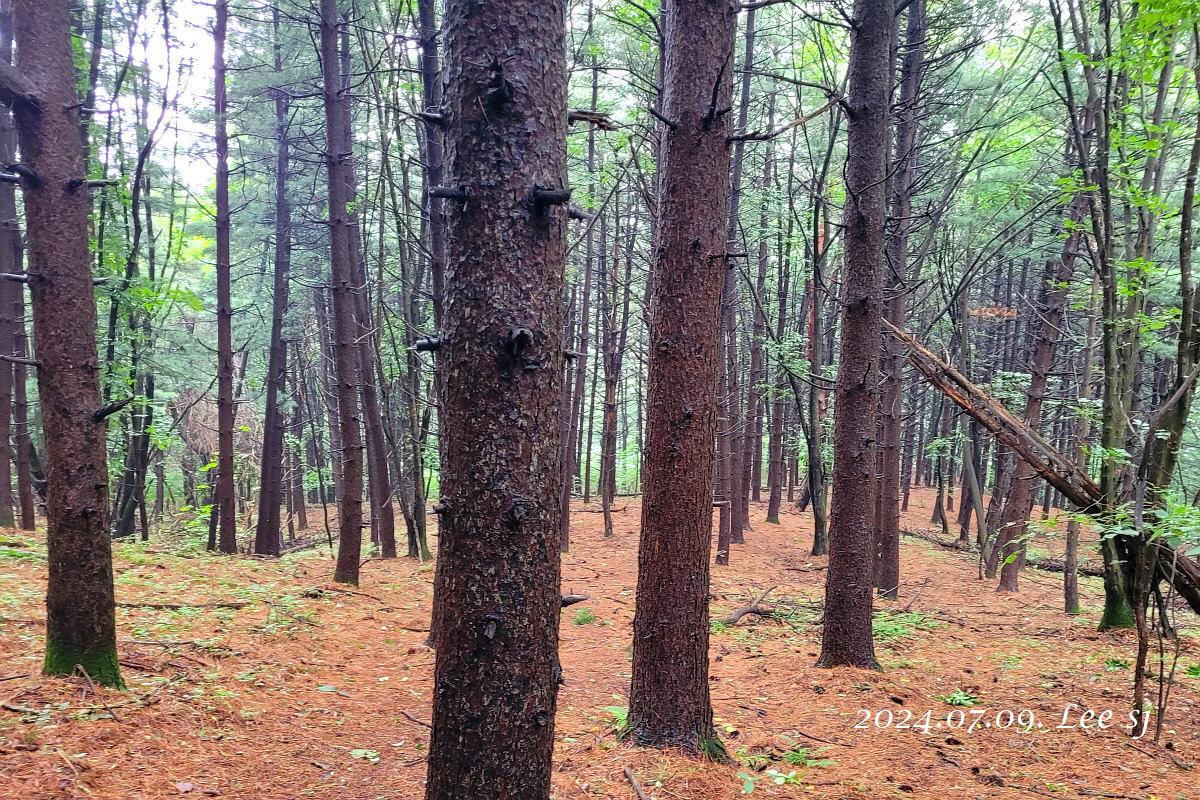 습하고 무더운 긴 장마 틈새 오르니 땀이요 내리니 숲향기