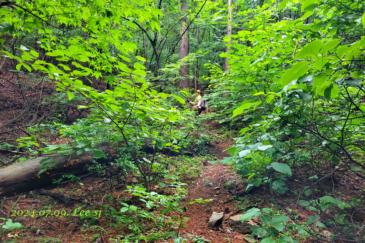 능선에 부는 바람이 얼마나 시원하던지... 이쪽으로 오길 참 잘했다며 잎넓은 잡목들과 쭉쭉 뻗어 군락을 이루는 잣나무 사이 내리막을 발걸음 가볍게 살방살방 ~