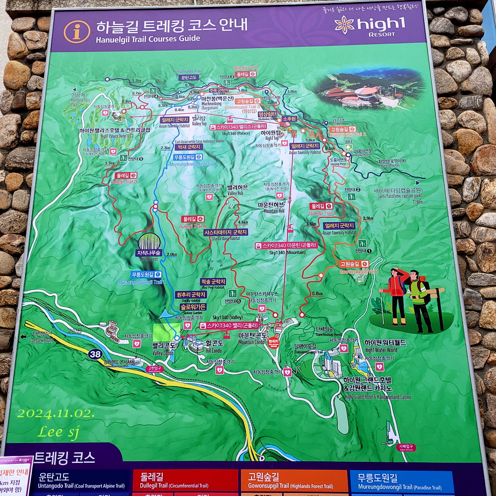 정선 하이원에서 자고 일어나 아침식사 후 하이원 팰리스 호텔로 곤돌라를 타러 갔으나 11월의 태풍 콩레이 영향일까? 강풍으로 운행을 하지 않아 탑승 못하고, 잠시 반짝 개이는듯 하더니 구름이 계속 밀려 오고 있어 마냥 기다릴 수 없어 돌아서기로 한다.