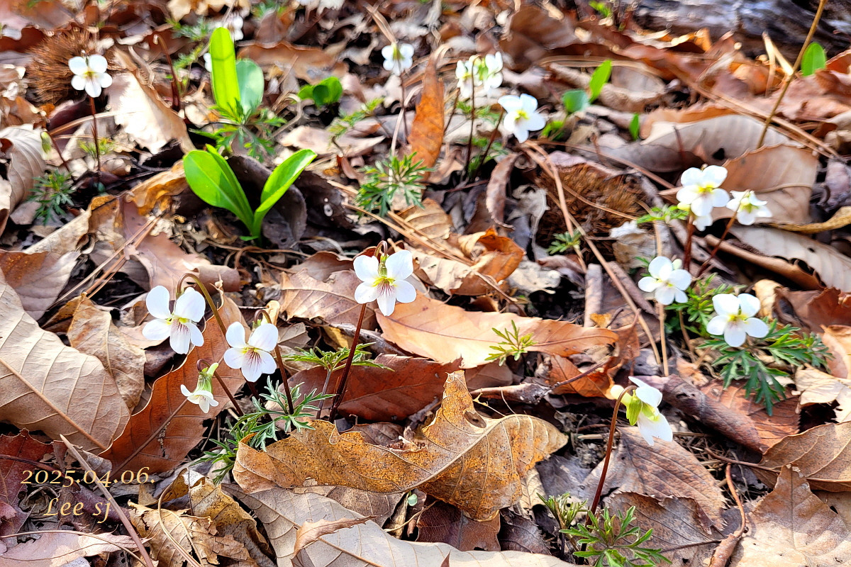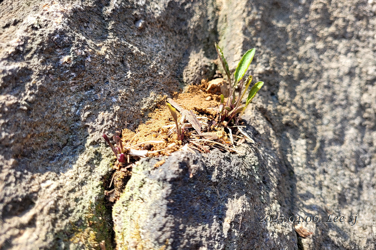 산으로 오르며 만난 바위 틈 제비꽃은 어제 내린 비로 올라갈 땐 물을 주지않고 한 바퀴 돌고 내려오는 길에 물 한 모금을 부어 주었다. 주변 지표면엔 낙엽 사이로 흰제비꽃이 많이 피어 세상 구경 하고 있는데 바위 틈 제비꽃은 언제 꽃대가 올라와 꽃을 피울 것인지...