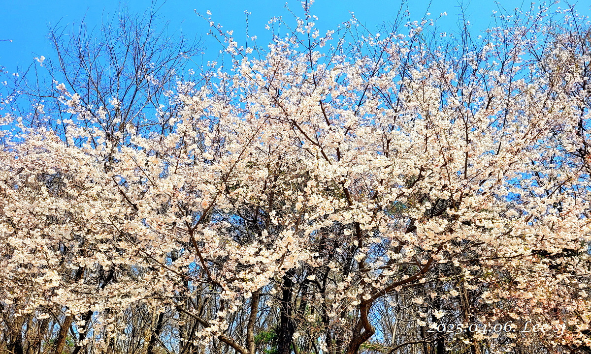 강수량은 적었지만 그래도 어제 내린 비로 한층 깨끗해진 화창한 봄 날, 벚꽃 감상이나 할까하고 공원으로 가니 공원 안쪽엔 감감 무소식이고 둘레길 한쪽 끝엔 가지끝 마다 붉은 봉오리가 매달려 꽃 피울 준비를 하고 있고 다른 한쪽엔 그래도 좀 많이 피어 화사하게 웃고 있어 올 벚꽃 인사는 이쯤 해도 될 것 같다.