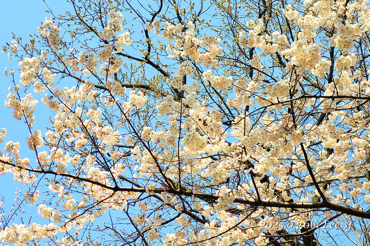 화려한 봄의 색에는 인공으로 심어 가꾼 다양한 색의 꽃들이 저마다 뽑내지만 무채색에 가까운 은은한 벚꽃은 키가 크기도 하다 지표면에 바짝 달라 붙은 키가 아주 작은 민들레 제비꽃 앙지꽃 등도 저마다의 빛갈로 자연을 채색한다.