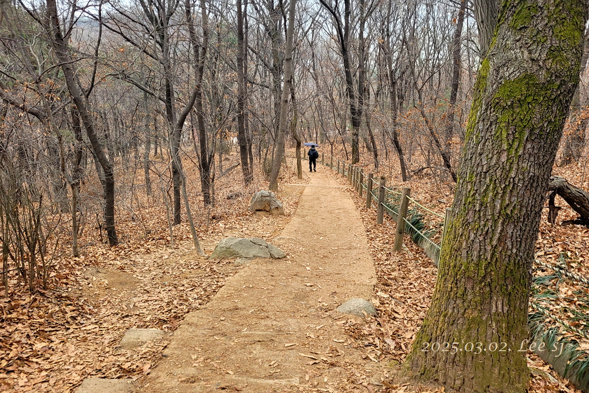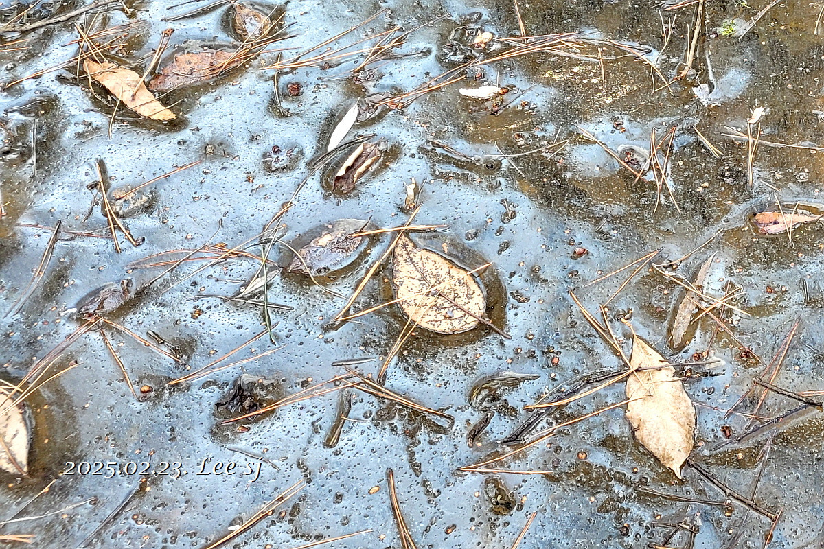 '250309(일) 산책 후 영화 감상봄은 봄 같은데 실감이 나질않아 개구리 울음소리라도 들을까하여 일부러 습지 길을 택했다. 멀리서나마 작게 들리는듯하여 발자국 소리를 줄이며 살금살금 가보니 전에 있던 곳은 얼음이 아직도 덮혀 있고, 그 위 얼음 녹은 곳에서 소리가 나 아주 천천히 야금야금 다가가니 눈치 챈 놈들은 재빠르게 물 속 깊이 들어가고 거리가 좀 떨어진 반대쪽에선 그래도 소리가 좀 나는데 아이들 포함한 일가족의 떠들썩한 소리에 나머지 녀석들 모두 소리는 커녕 잠수하고 만다. 그나마 조금이라도 잠시 소리를 들을 수 있어 봄을 느낄 수 있었다. 날씨 풀린 주말 낮시간이라 그런지 다른 때 보다 산책 나온 사람들이 많아져 가고 오는 이들로 데크길이 좁게 느껴져 한동안 다니지 않던 산 아랫쪽 호젓한 길..