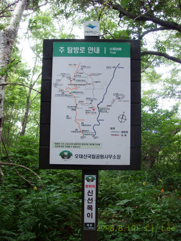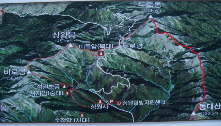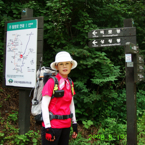 그때는 신배령까지 종주 했으나 오늘은 여름 날씨라 진고개에서 동대산을 거쳐 두로봉까지 타고 상원사 방향으로 하산.