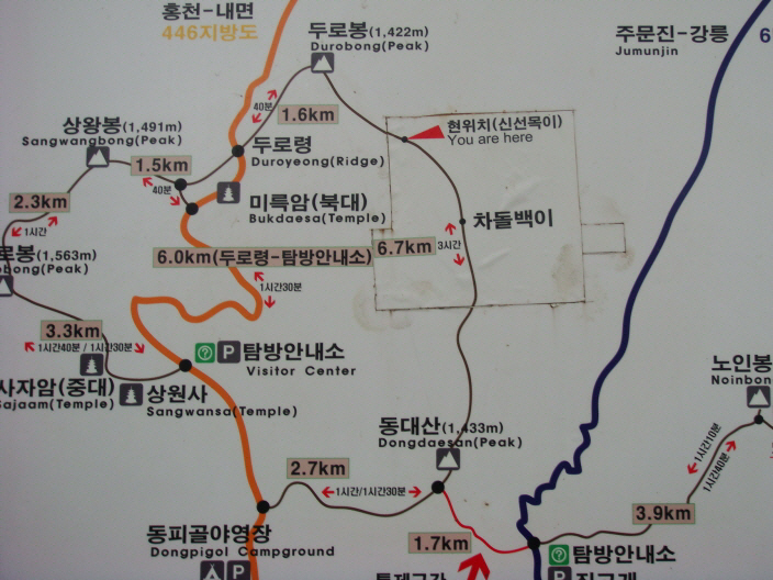 뜨거운 날씨에 2진으로 짧은 산행하고 계곡물에 몸이나 담글까하고 참석했더니 모두들 진고개에서 하차한다.(09:50).