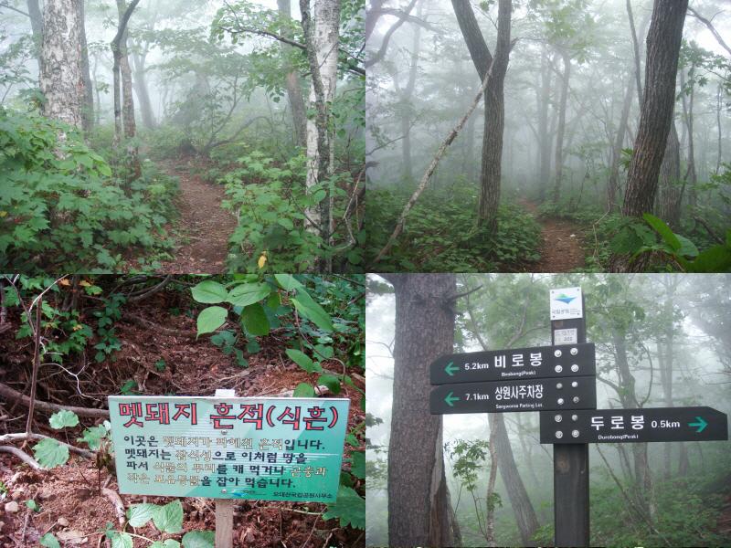 동대산을 지나 두로봉을 가는 능선엔 멧돼지들의 흔적이 심하다. 멧되지들이 김매기 작업을 해줬으니 나무 뿌리는 숨쉬기 좋겠다.