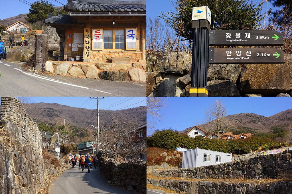 다른 버스로 이곳으로 온 팀이 있어 마을로 돌라가는 사람들 따라가 보니 안양산으로 간다고,