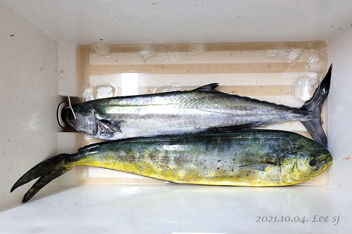 연휴를 이용해 바다낚시 떠났던 아들이 갈치와 참치, 그리고 만세기를 잡아왔다.
