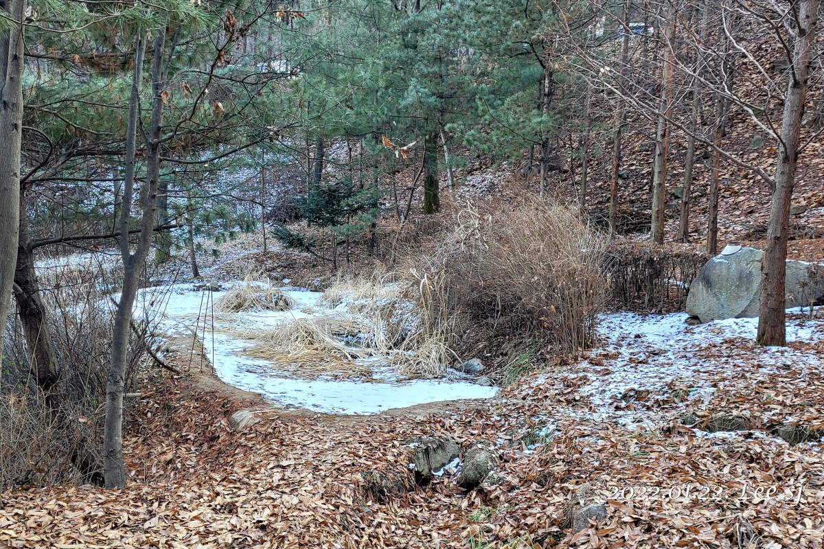 봄이 되면 노오란 생강나무 꽃이 제일 먼저 피는 곳인데 음지라서 아직 눈이 녹질 못하고 있다.