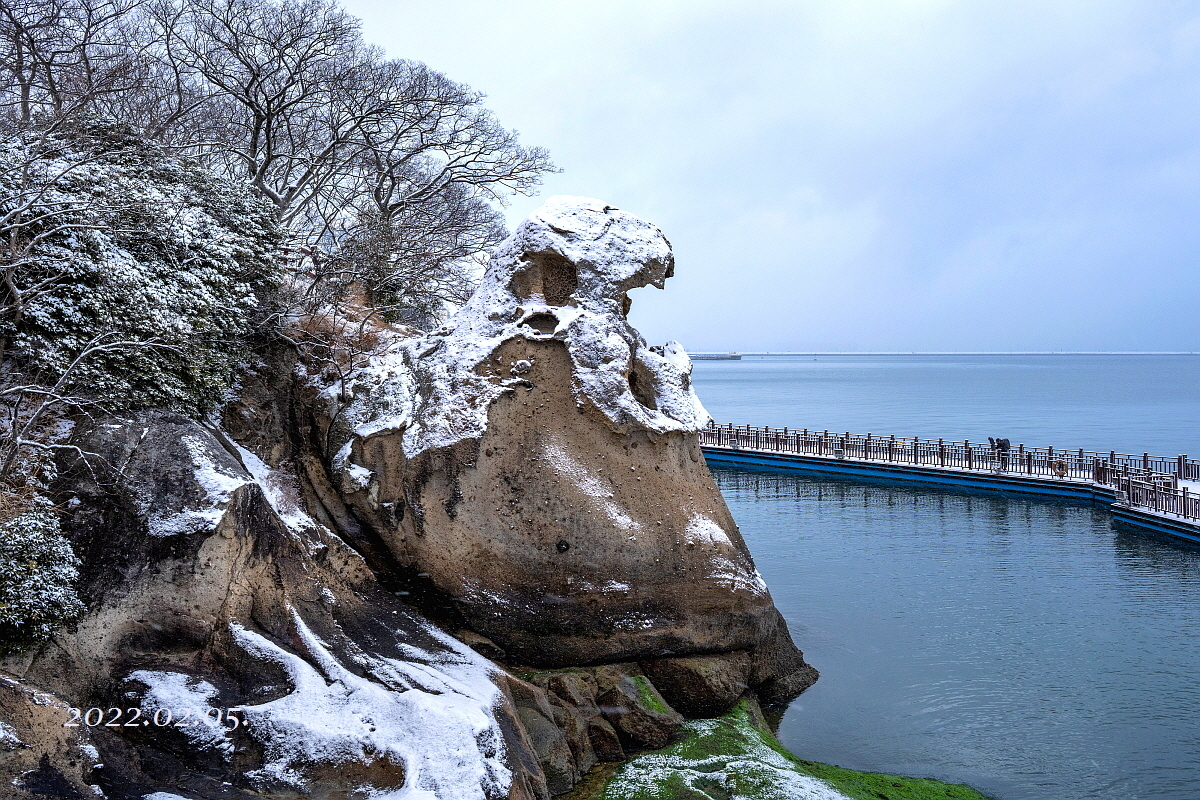 예보에 맞는 바닷가 부두에 눈 쌓인 사진 날아온다.