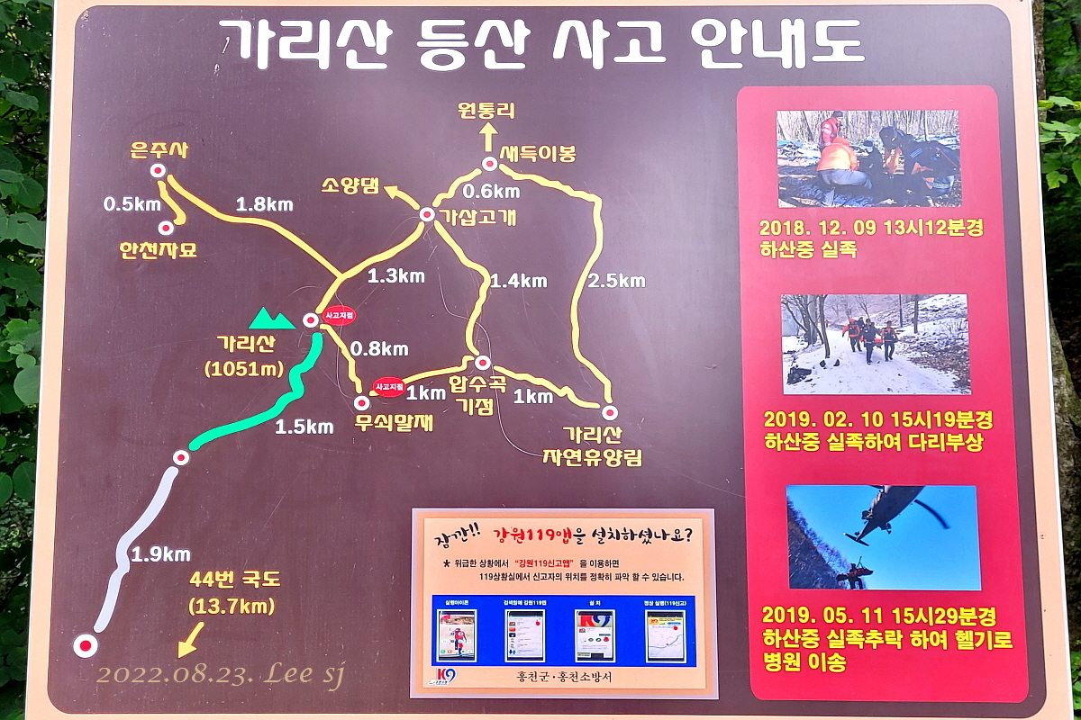 네 번째 산행인 오늘(2022.08.23)은 아침 출발 시간에 비가 내려 걱정하며 들머리 도착하니