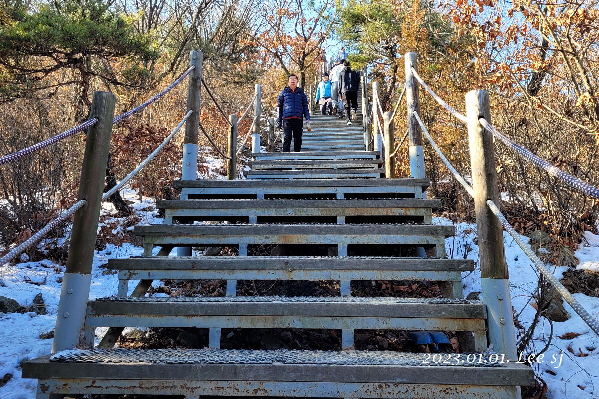 오늘은 두 달 전('22.11.26) 내려 딨었던 가파른 계단길을 택해 오르기 시작,