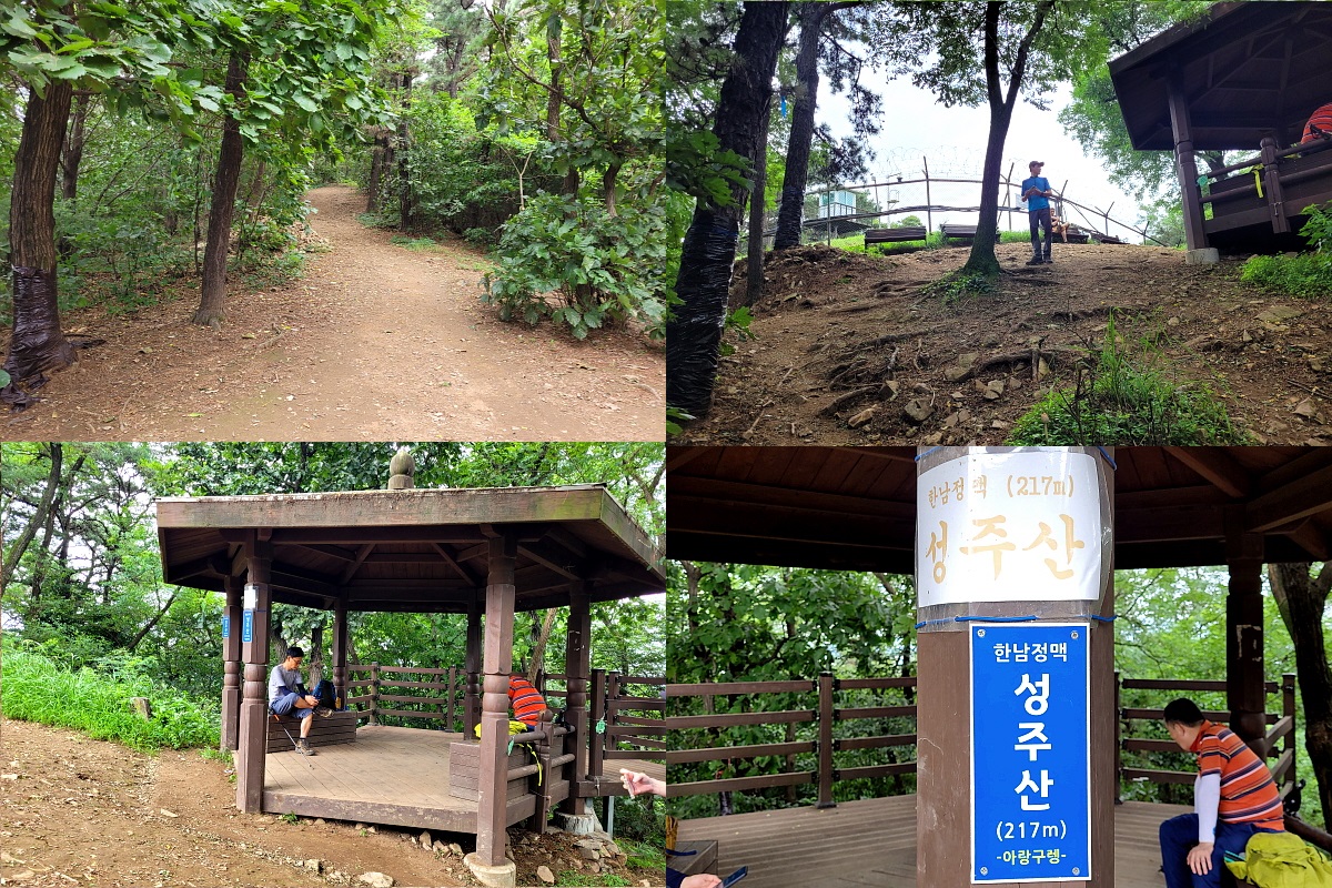 다리를 건너 계속 오르면 성주산 정상, 조망도 없고 군시설이 보인다. 여기까지 온 사람들이 소래산으로 가는 이들이 있는가하면 소래산 쪽에서 오는이들도 보인다. 기회가 되면 연계하여 걸어 보겠지만 오늘은 초반에 알바 하는 바람에 시간을 많이 뺐겨 갔던 길로 되돌아 하산하며 끝을 맺는다. 정상에서의 조망이 없으니 다시 찾고 싶은 맘이 생기질 않는다.