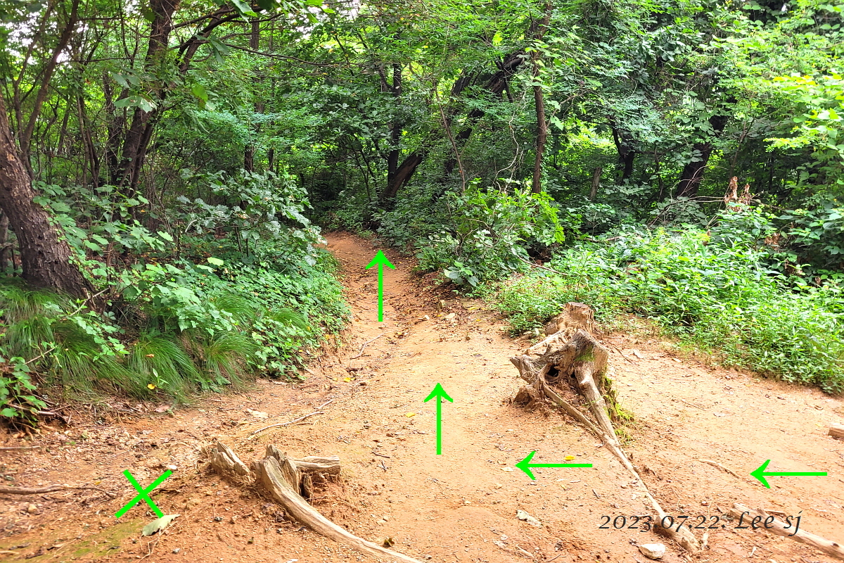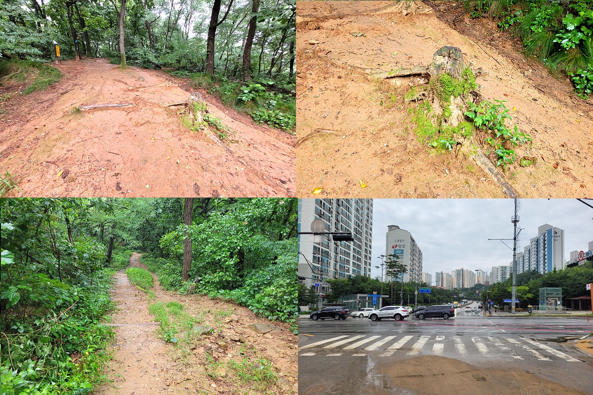 소래공원쪽에서 올라오는 길과 만나지는 곳이 어디일까 하고 갈림길에서 왼쪽 방향으로 딛다 보니 계속 내리막, 한 시간은 지났는데 아무래도 이상한 감이 들어 휴대폰에서 위치를 확인해 보니 아뿔사~ 오히려 성주산과 더 멀어지는 방향, 돌아서서 내려 딛은 만큼 다시 올라서려니 성주산 근처도 가기 전에 기운이 다 빠진다.
