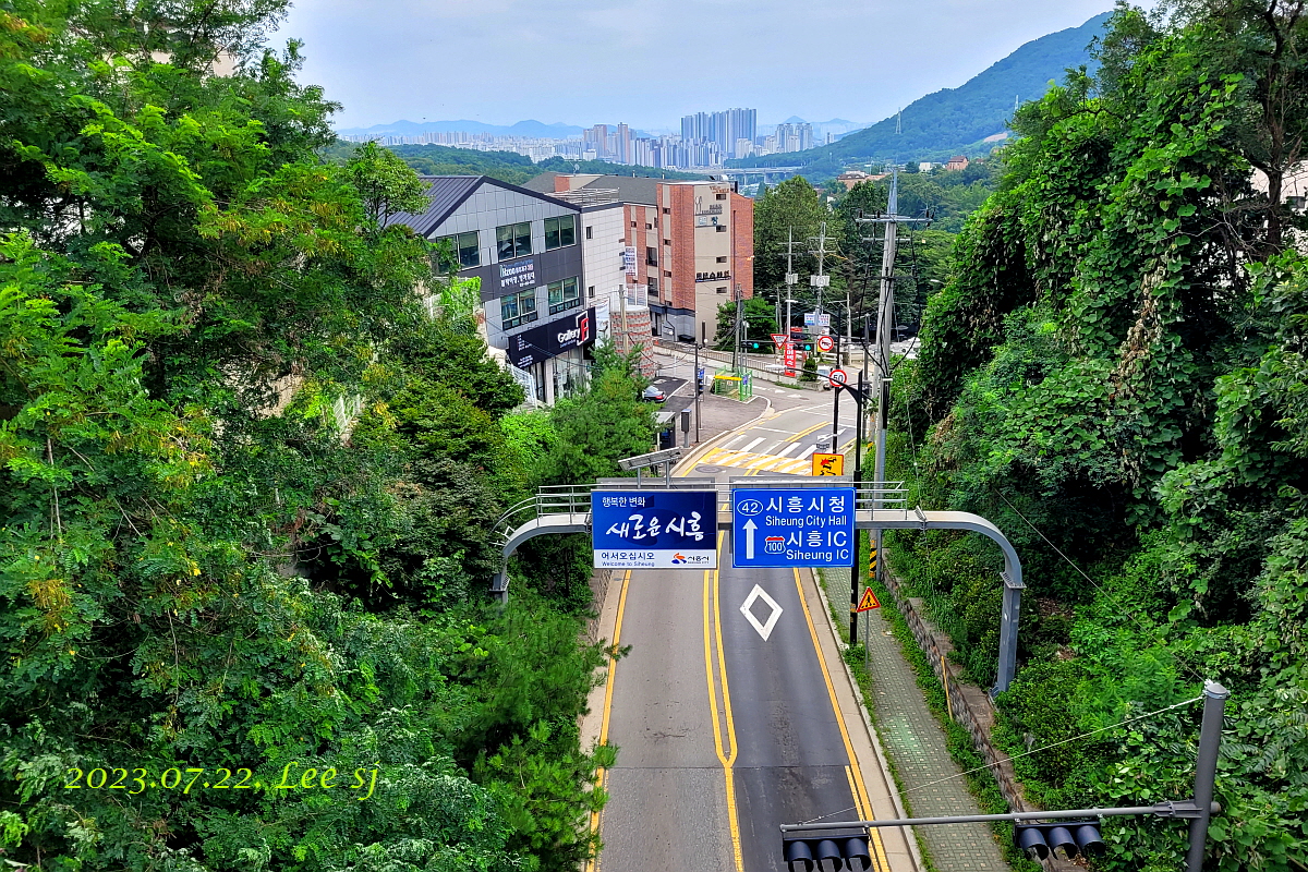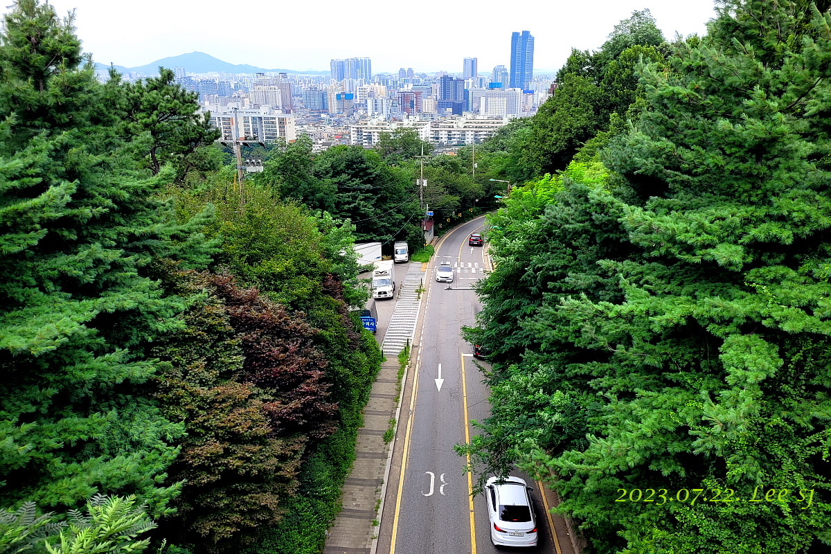 다리 아래로는 '하우고개'를 중심으로 양쪽으로 도로가 뻗어있다.