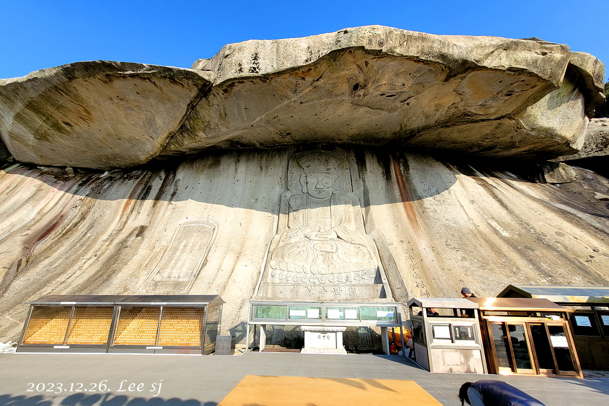 전과 달리 계단을 지그재그로 넓게 새로 만들어놓아 다니기에 편해젔으나 높이는 그대로라 힘든다. 마애불 앞에도 서축을 쌓고 울타리를 만들고 등을 달아 놓아 마애불이 제대로 보이질 않는다.