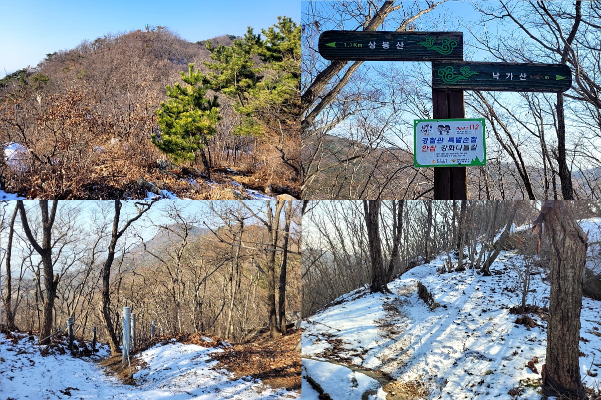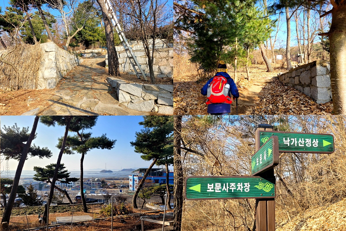 오늘 산행하는 1진 코스는 전득이 고개에서 해명산, 낙가산을 거쳐 상봉산까지 갔다가 보문사 쪽으로 하산하는 코스다. 천천히 가면 얼마든지 갈 수 있는데 속도가 느려 민폐 될까 싶어 2진으로 낙가산만 올라가 앞으로 펼쳐진 바다 감상 후 내려올 생각이다.