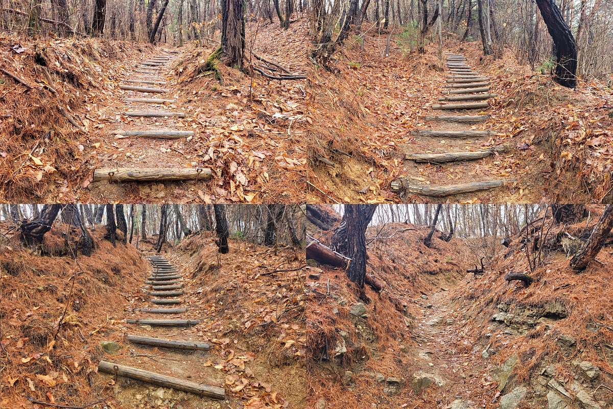 어짜피 원점산행이라 1진 따라 적당히 걷다 내려올 생각으로 사진 찍어가며 천천히 오르기 시작, 쉬엄쉬엄 한동안 올라 정상까지의 길이가 2.6Km 라고 쓰인 이정표를 보니 마음이 변한다. 올라온 거리도 있으니 왕복이면 6Km, 선두와 많이 떨어져 있긴 하지만 잘 하면 올라갔다 와도 되겠단 생각이 든다. 2진으로 같이 걸었던 일행들은 도로 다 내려가고 혼자 오르는 중인데 앞서가던 몇 사람들이 그만 가겠다며 내려오고 오늘 처음 참석한 한 분은 가지도 오지도 않는 상태, "더 올라가실건가요?" 여쭈니 "더 가고 싶은데 선두는 벌써 올라가고 몇 사람이 같이 걷다 내려가니 망설여 진단다. " 가시고 싶으면 올라 가세요 동행 할께요"