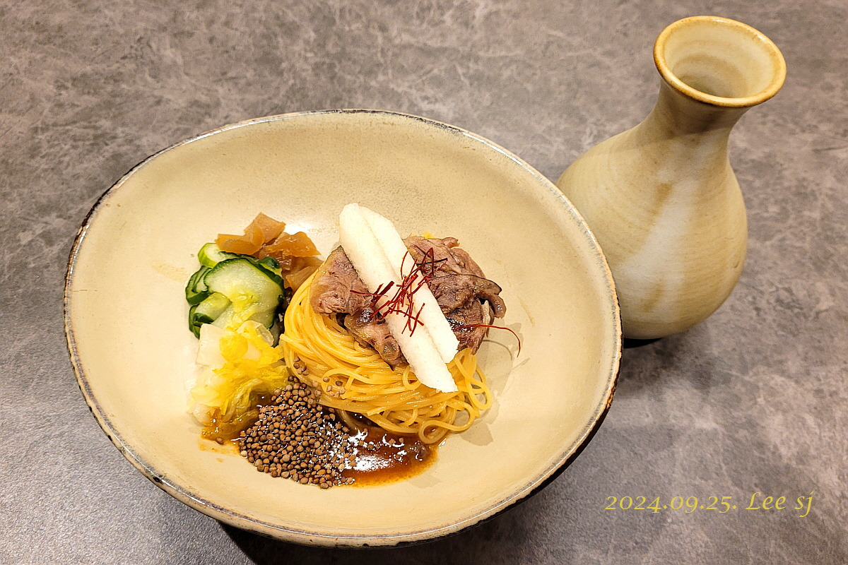 들기름 들깨 국수 + 육수 추가 (들깨가 입안에서 톡톡 터지며 씹히는 식감이 재밌다)