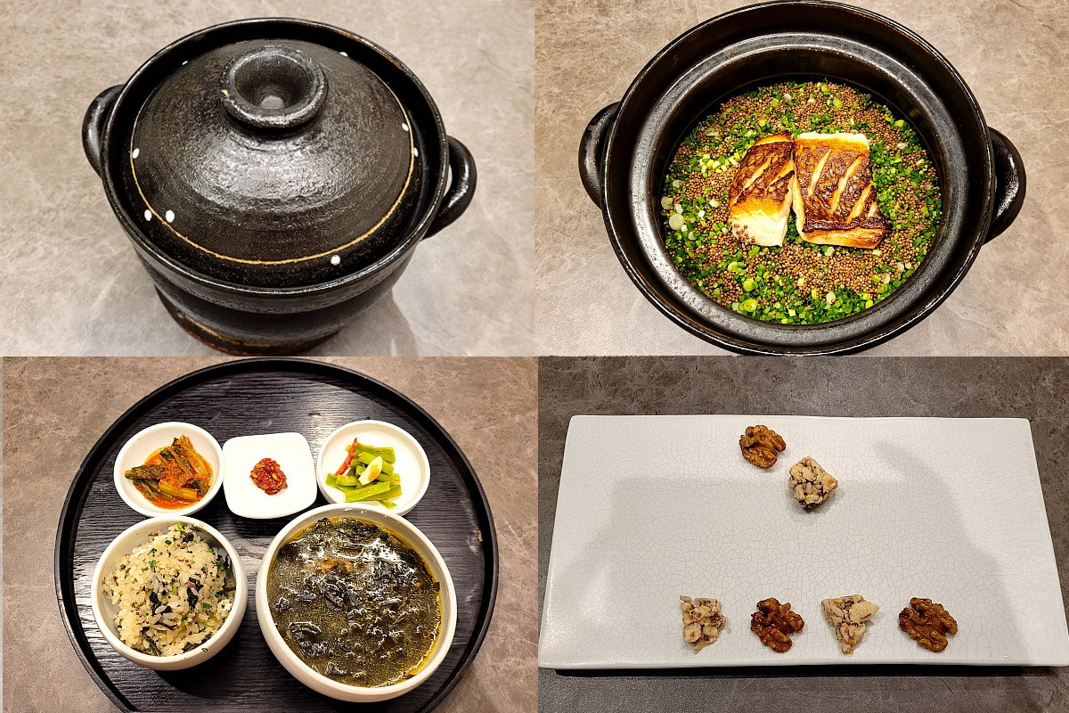 도미 구이 확인 시킨 후 도미구이 들깨 비빔밥과 미역국,